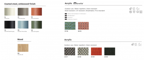 Новая коллекция Dress Code вдохновлена канонами высокой моды. Дизайнеры постарались воспроизвести игру с сочетаниями цветов конструкций и сидений, с рисунками тканей для внутреннего и уличного использования. В дополнение к версиям Basic и Smart из гладких и плоских тканей есть стеганая версия Glam из больших квадратов и волнообразная версия Fashion с мягкой подкладкой. Выстегивание и мягкая обивка являются как эстетическим элементом, так и источником большего комфорта.