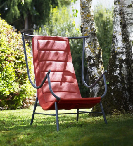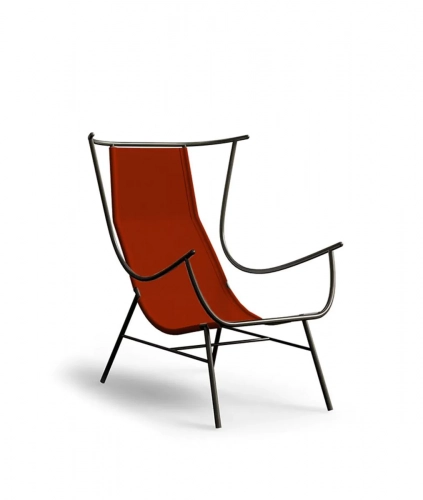 Кресло Nanda вдохновлено великолепным креслом бержер, которое покоряло и влияло на художников и дизайнеров с XVIII века до наших дней. Минималистичный дизайн Nanda деконструирует культовый бержер, используя ограниченное количество материалов, что придаёт ему подчеркнуто современный вид, идеально подходящий для использования на открытом воздухе. Каркас кресла Nanda изготовлен из оцинкованного и подвергнутого пескоструйной обработке железа песочного или графитового цвета и тщательно спроектирован для удобного расположения. Обивка сиденья выполнена из ткани Batyline Serge Ferrari кирпичного красного и песочного оттенков.