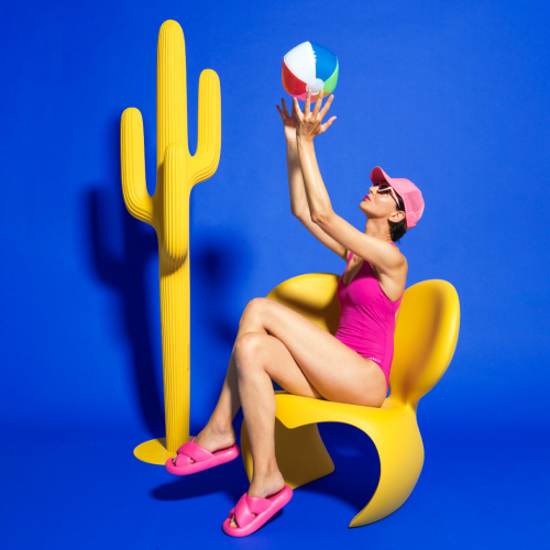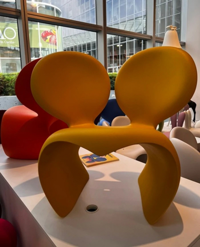 Кресло Don't F**k With The Mouse, созданное в 1988 году, является одним из самых знаковых кресел дизайнера Рона Арада. Будучи продуктом ограниченной серии, за прошедшие годы он претерпел многочисленные метаморфозы – наконец, кресло стал промышленным продуктом, предложенным Qeeboo в двух версиях: одна для внутренних помещений, выполненных из пенополиуретана, покрытых тканью, а другая для наружных пространств, изготовленная методом ротационного формования из полиэтилена.