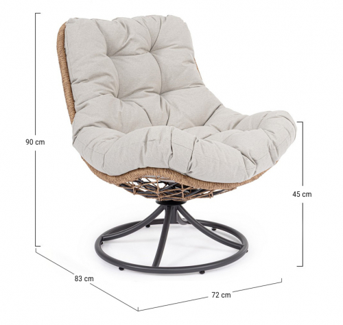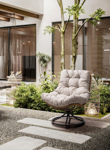 Погрузитесь в атмосферу релаксации с вращающимся лаунж-креслом Azores. Это не просто место для отдыха - это стильный акцент, который добавит вашему пространству динамики и уюта благодаря своей уникальной конструкции и эргономичному дизайну. Кресло установлено на вращающуюся базу, позволяя поворачиваться на 360 градусов и наслаждаться видом или общением под любым удобным углом. Благодаря своему современному дизайну и прочной конструкции, кресло Azores идеально подойдет как для уютного уголка в гостиной, так и для террасы или балкона.