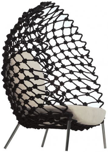 Каждый поворот и узел кресла Dragnet повествует историю рыбака, отправившегося в море за своим ежедневным уловом. Кресло сплетает историю, вдохновленную круглой сетью, раскинувшейся в воздухе, изящно касаясь того слоя океана, где взаимодействуют ветер и волны. Это единственное движение, когда вы забрасываете рыболовную сеть, открывающую красивую паутину решетчатой конструкции, является ритмическим источником вдохновения коллекции Dragnet. Привлекательная сетка, сделанная из скрученного роупа и проволоки, тщательно обернутой вокруг стальной рамы в форме кокона.