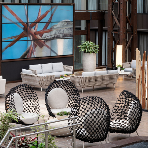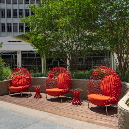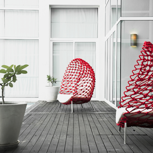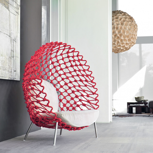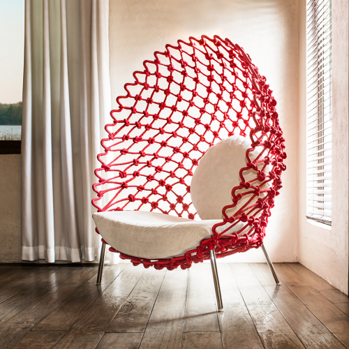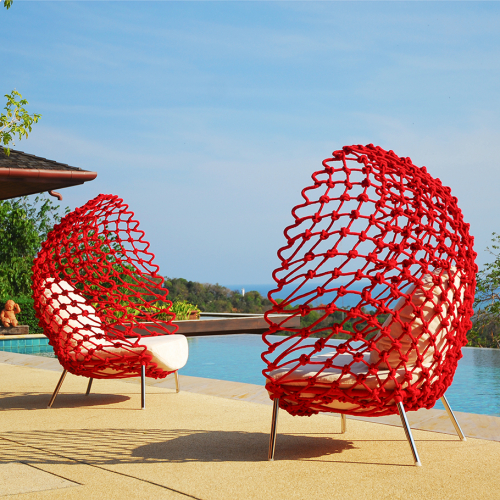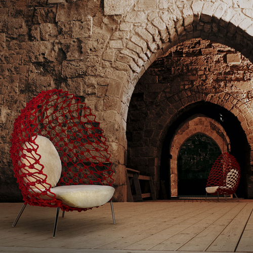 Каждый поворот и узел кресла Dragnet повествует историю рыбака, отправившегося в море за своим ежедневным уловом. Кресло сплетает историю, вдохновленную круглой сетью, раскинувшейся в воздухе, изящно касаясь того слоя океана, где взаимодействуют ветер и волны. Это единственное движение, когда вы забрасываете рыболовную сеть, открывающую красивую паутину решетчатой конструкции, является ритмическим источником вдохновения коллекции Dragnet. Привлекательная сетка, сделанная из скрученного роупа и проволоки, тщательно обернутой вокруг стальной рамы в форме кокона.