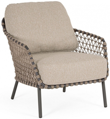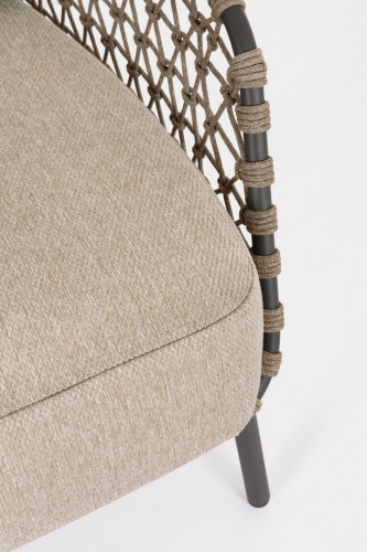 Лаунж кресло Ivissa - это современный предмет мебели интересной формы и цвета, благодаря которому он оживит любое пространство, в котором находится. Кресло привлекает внимание и станет прекрасным дополнением гостиной зоны на открытом пространстве. Оно изготовлено из стали и имеет мягкие подушки на сиденье и спинке. Подлокотники и продуманная конструкция гарантируют комфорт во время использования. Плетеный корпус придает креслу удивительный характер. Ножки обеспечивают хорошую устойчивость.