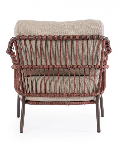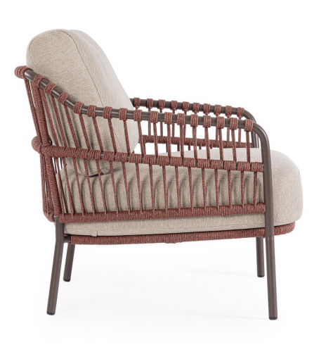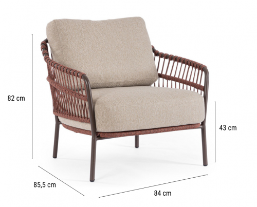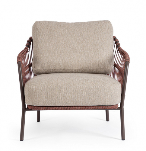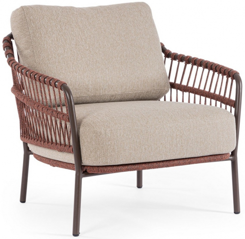 Лаунж кресло Talaia - это современный предмет мебели интересной формы и цвета, благодаря которому он оживит любое пространство, в котором находится. Кресло привлекает внимание и станет прекрасным дополнением гостиной зоны на открытом пространстве. Оно изготовлено из стали и имеет мягкие подушки на сиденье и спинке. Подлокотники и продуманная конструкция гарантируют комфорт во время использования. Плетеный корпус придает креслу удивительный характер. Ножки обеспечивают хорошую устойчивость.