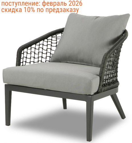 Комфортное кресло с алюминиевым каркасом и стильным плетением из роупа - идеальное сочетание прочности и уюта. Мягкие подушки из износостойкой ткани обеспечивают максимальный комфорт при отдыхе. Современный дизайн делает кресло универсальным элементом для интерьера и уличных пространств. Идеально подойдет для отдыха на террасе, балконе, в саду или гостиной. Отлично сочетается с кофейным столиком из той же коллекции.