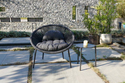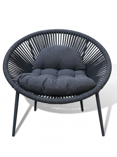 Кресло Nancy порадует вас не только комфортом, но и изысканным дизайном. Модель выглядит элегантно и грациозно, но за этим скрывается исключительная стабильность, поскольку кресло выполнено из алюминия, устойчивого к атмосферным воздействиям. Плетение выполнено из полиэстерового каната - роупа. Чехол мягкой подушки выполнен из прочного, стойкого к загрязнениям, водооталкивающего олефина.