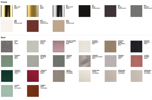 Цена на сайте указана за модель с отделкой каркаса M7 и обивкой из материала Fidivi Jet. Цены на другие модели уточняйте у менеджеров.