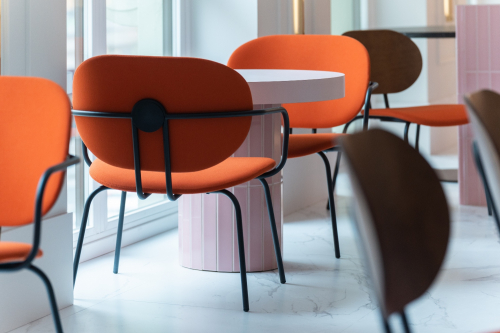 Hari – это коллекция, вдохновленная миром текстильных ткацких станков, индустриальной эстетикой в сочетании с деликатностью нитей, что создает утонченный и элегантный предмет мебели, будь то стул, кресло или барный стул. Отличительной особенностью всех изделий Hari является гиперболизированная прочная и эстетически привлекательная пуговица Zamak, обычно широко используемая в текстильной промышленности, и в данном случае расположенная на задней стороне спинки. Комбинации сидений и спинок делают каждое изделие Hari уникальным и индивидуальным, а тщательно подобранная палитра материалов создает серию сидений с большой выразительностью и ярким внешним видом.