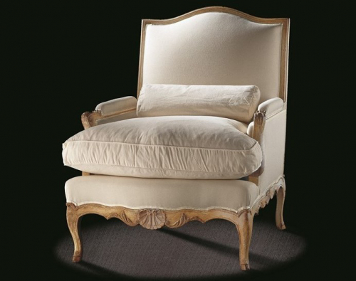 - Репродукция античной модели кресла Bergere эпохи Регентства (1730 года), которое обозначило собой переходный этап от традиционного барокко к рококо. Стиль Регентства пронизан элегантной роскошью, утонченностью и одновременно с этим простотой. Однако массивность и прочность также является отличительными особенностями этого стиля. Для него характерны преобладание правильных прямых линий, геометрическая точность, гнутая изящная форма ножек, наличие свободных форм и разнообразие орнаментов.