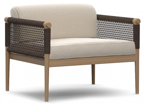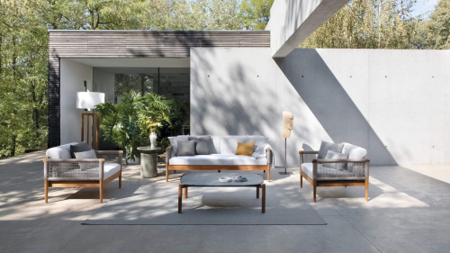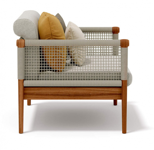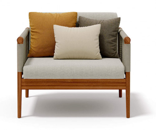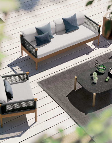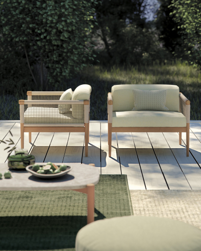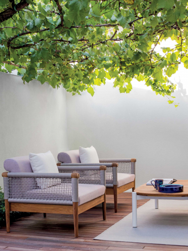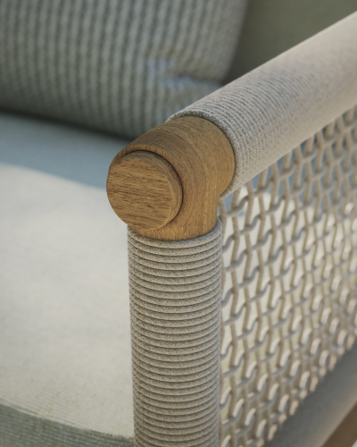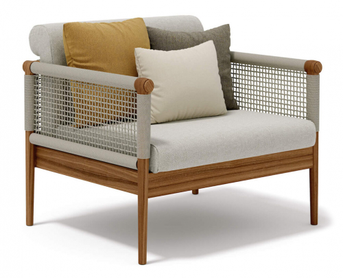 Строгий и минималистичный дизайн коллекции Lodge, описанный в структуре, полностью выполненной из тика, оплетенной круглым канатом, который создает мягкое и прочное плетение. Гостеприимное гнездышко, которое становится местом для разговоров и чтения.