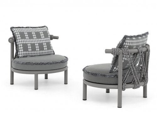 Patricia Urquiola воплотила свое виденье счастья жизни на открытом воздухе в коллекцию мебели Trampoline, полную игривых дизайнов, округлых и извилистых форм. Коллекция выделяется своим экологически чистым подходом с использованием инновационных, экологически чистых материалов, полностью сделанных в Италии, благодаря исследованиям Cassina LAB, сотрудничеству Центра исследований и разработок Cassina и Poli.design Политехнического университета Милана.