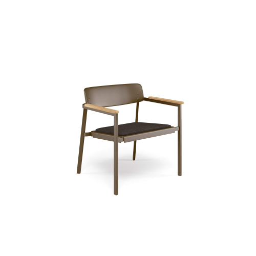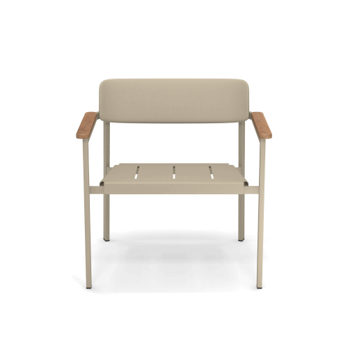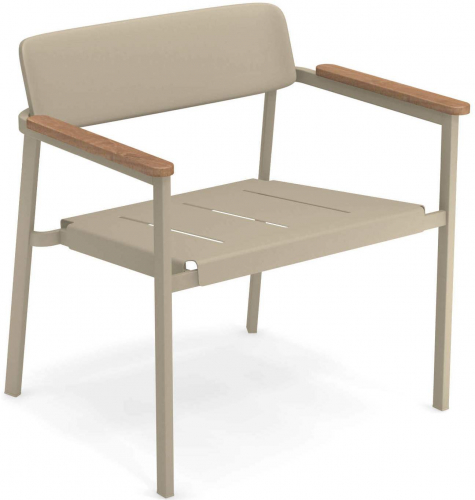 Материал подлокотников: тик. Тик - это твердая древесина с высоким содержанием масла, подходящая для наружного использования, без покраски. Если он не имеет никакой защитной обработки, поверхность превратится в серебристо-серый цвет, естественную защиту внутренней части дерева, которая считается неотъемлемой частью очарования тика. Тик, используемый для продуктов EMU, сертифицирован FSC®.