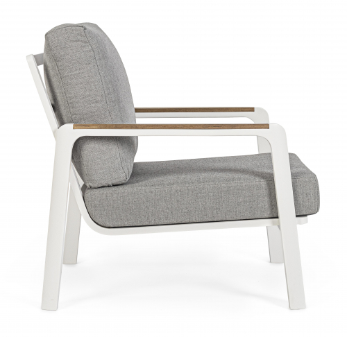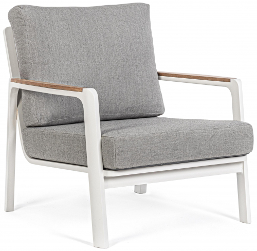 Мягкое кресло Jalisco в сочетании с диваном коллекции станет идеальным выбором для обстановки лаунж зоны открытого пространства. Каркас выполнен из алюминия с порошковым покрытием (полиэстер), подлокотники - со вставками из тика. Съемные чехлы подушек выполнены из акрила.