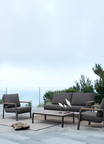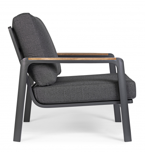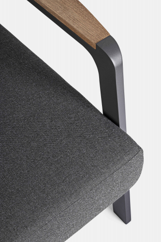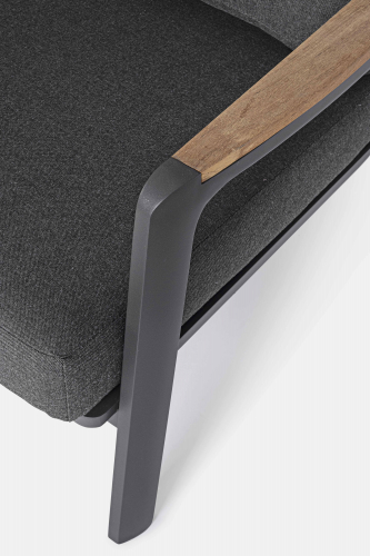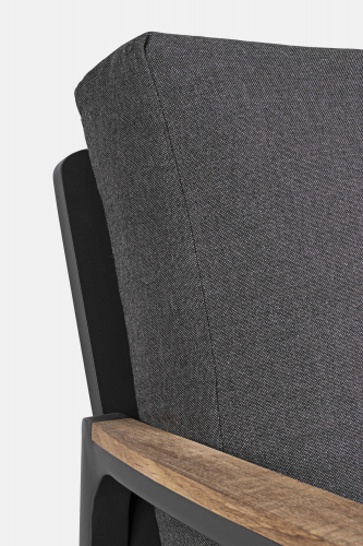 Мягкое кресло Jalisco в сочетании с диваном коллекции станет идеальным выбором для обстановки лаунж зоны открытого пространства. Каркас выполнен из алюминия с порошковым покрытием (полиэстер), подлокотники - со вставками из тика. Съемные чехлы подушек выполнены из акрила.