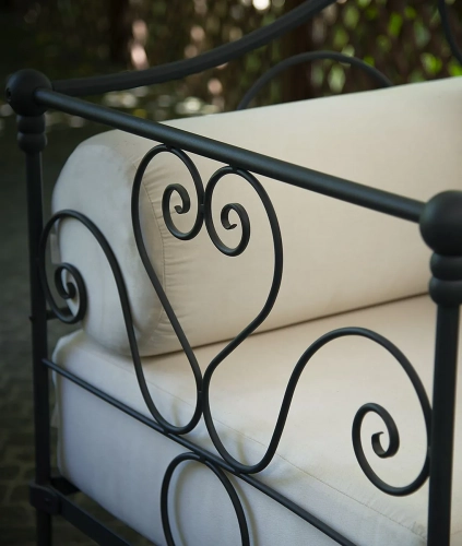 Каркас из железа изготавливается вручную и выкован вручную. При гальванизации железо обрабатывается технически более совершенным типом окраски. Более экологичный, потому что он устраняет летучую часть краски, состоящую из загрязняющих растворителей и разбавителей, более эффективный, потому что он дает более прочное покрытие, а также создает более элегантную отделку.
