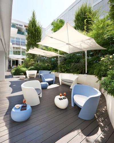 Кресло Rap - это кресло, которое характеризуется такими же обволакивающими формами как и диван Rap: встреча между линейностью сиденья и "обнимающей" спинкой дает жизнь объекту, который уравновешен и в то же время полон энергии. Кресло Rap в сочетании с диваном этой же коллекции может создать минималистичный, элегантный и уютный стиль как в частных домах, так и заведениях сферы Contract. Кресло стало еще более удобным и комфортным благодаря возможности добавления мягкой полиуретановой подушки. Чтобы оживить сады, террасы и другие открытые площадки, кресло Rap также доступно в светящейся версии.