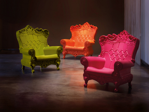 Queen of Love - это уникальное кресло, созданное дизайнерами Грациано Моро и Ренато Пигатти. Культовое кресло Queen of Love - первое и самое любимое изделие всей коллекции Design of Love: как трон, Queen of Love венчает всех, кто на нем сидит. Кресло полно деталей, как типичный стиль барокко, но она современное, попсовое и ироничное благодаря материалу, из которого оно сделано, полиэтилену. Queen of Love элегантно, привлекательно, популярно и незабываемо, поэтому часто становится главным героем телевизионных шоу и международных мероприятий.
