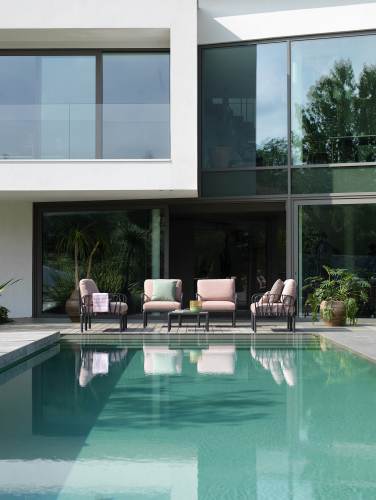 Ветвистая переплетенная конструкция вытекает из строгого геометрического дизайна, который также включает инновационную систему соединения между спинкой и сиденьем, осуществленную с помощью простого вращения. Последнее решение позволяет избежать непривлекательных стыков и открытых отверстий и поддерживает эстетическую гармонию плетеной конструкции на сиденье и спинке.