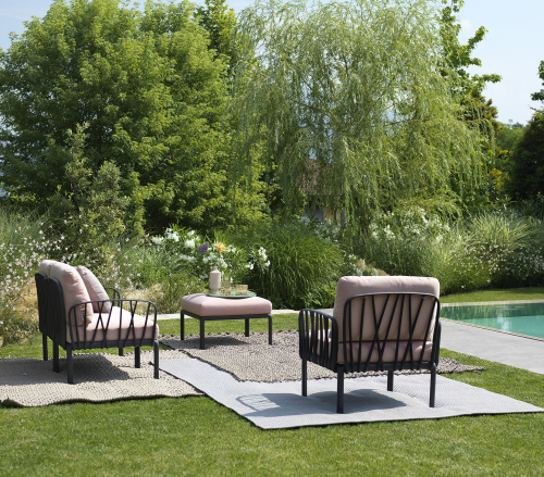 Модули Komodo выполнены из стеклопластика, имеют складные спинки и боковины, съемные подушки, благодаря чему можно составить диван любой длины, превратить отдельные модули в столики или пуфы.