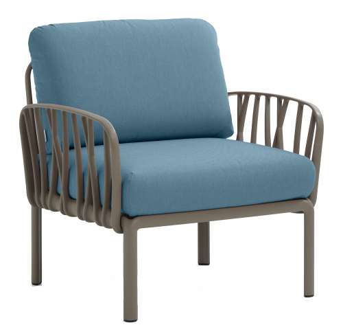 Модули Komodo выполнены из стеклопластика, имеют складные спинки и боковины, съемные подушки, благодаря чему можно составить диван любой длины, превратить отдельные модули в столики или пуфы.