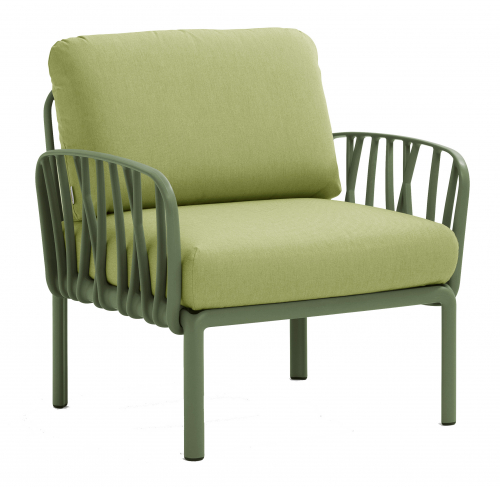 Модули Komodo выполнены из стеклопластика, имеют складные спинки и боковины, съемные подушки, благодаря чему можно составить диван любой длины, превратить отдельные модули в столики или пуфы.