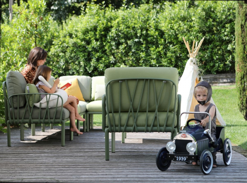 Модули Komodo выполнены из стеклопластика, имеют складные спинки и боковины, съемные подушки, благодаря чему можно составить диван любой длины, превратить отдельные модули в столики или пуфы.