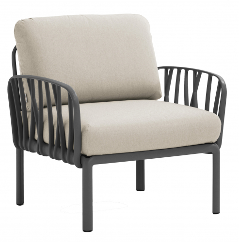 Модули Komodo выполнены из стеклопластика, имеют складные спинки и боковины, съемные подушки, благодаря чему можно составить диван любой длины, превратить отдельные модули в столики или пуфы.