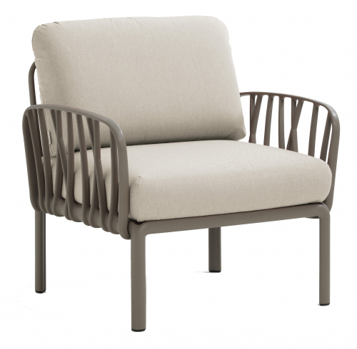 Модули Komodo выполнены из стеклопластика, имеют складные спинки и боковины, съемные подушки, благодаря чему можно составить диван любой длины, превратить отдельные модули в столики или пуфы.