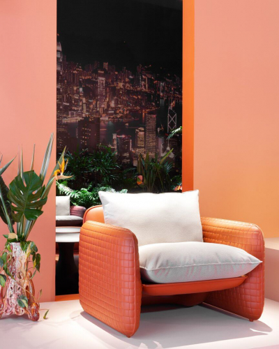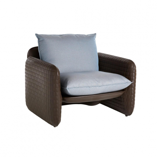 Кожа с переплетениями - главная особенность текстуры каркаса Mara, кресла для отдыха, разработанного дизайнером Lorenza Bozzoli. Эта уникальная текстура идеально сочетается с тканевыми водонепроницаемыми подушками, что делает кресло применимым на улице. Удобное кресло Mara подходит для проектов Contract на крыше, в саду или в просторных помещениях. Также в коллекцию Mara входят диван, пуф и кофейные столики.