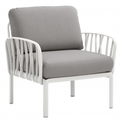 Модули Komodo выполнены из стеклопластика, имеют складные спинки и боковины, съемные подушки, благодаря чему можно составить диван любой длины, превратить отдельные модули в столики или пуфы.