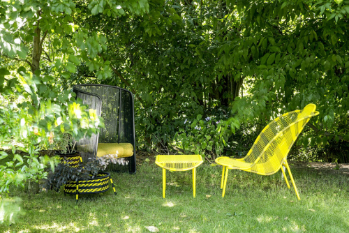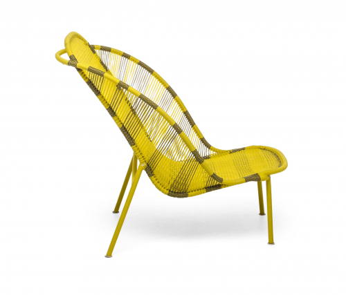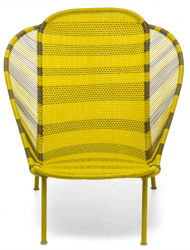 Коллекция Imba создана с использованием плетеных нитей, которые обычно используются для рыболовных сетей, все рисунки разные и оригинальные, как и их названия. Сотканные вручную, они человечны в своих несовершенствах и недостатках. Модель имеет каркас, выполненный из окрашенных нержавеющих труб из стали, который вручную оплетен полиэтиленовым шнуром. Накладки на ножки выполнены из ПВХ.