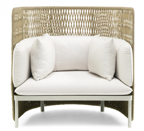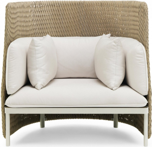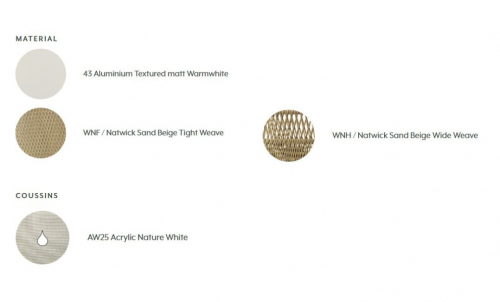 Цена на сайте указана за модель с каркасом из белого алюминия (Aluminium Warmwhite) с свободным плетением (Natwick Wide Weave) и подушками из акрила белого цвета (Acrylic Nature White).