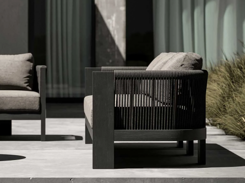 Коллекция Ralph Nightfall состоит из обеденного набора, шезлонга и журнальных столиков, а также набора для гостиной, выполненных из тикового дерева и деталей из акриловой веревки, которые изящно выражают уникальный синтез эстетики, функциональности и эргономики. Коллекция Ralph Nightfall, ставшая культовым дизайном, обеспечивает целостность восприятия визуального потока с обрамленными деталями сильными толстыми линиями. Мягкая мебель обогащена подушками в тонах, совместимых с цветом черного тикового дерева, и предлагает новую и особую интерпретацию Ваших открытых площадок. Гармонизируя современный подход к дизайну с экологически чистыми материалами нового поколения, коллекция воссоздает коды стиля, характерные для достойного дизайна, к которому она принадлежит.