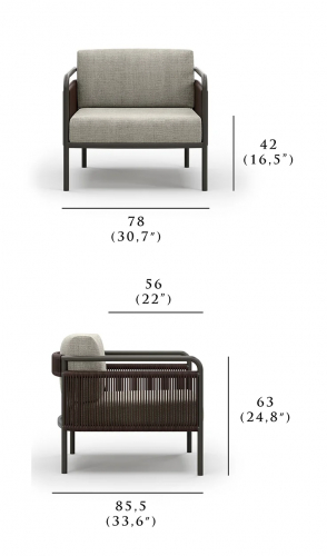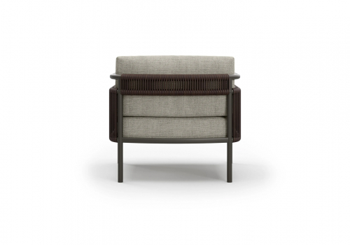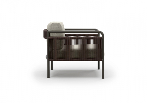 Ключевые предметы коллекции - кресла и диваны - выполнены в технике, где контраст между оплетенными веревкой и гладкими участками подчеркивается за счет минималистичной каркасной конструкции. Это сочетание создает эстетический баланс между грубоватой фактурой и утонченностью, позволяя простоте и индивидуальности сосуществовать в одном дизайне.