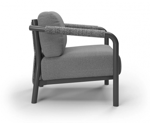 Лаунж-кресло Lorvain демонстрирует сдержанную элегантность и точность форм. Сочетает прочность и эстетическую утончённость: устойчивая к воздействию влаги и перепадам температур алюминиевая рама с порошковым покрытием обеспечивает долговечность при уличной эксплуатации, а детали из плетеной вручную акриловой веревки придают изделию благородную фактуру и визуальную лёгкость. Кресло идеально для открытых пространств: террас, патио или садовых зон отдыха.