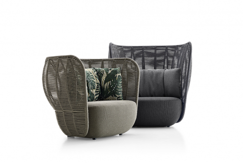Bay - это коллекция скульптурных и монолитных, но визуально легких уличных сидений, состоящая из дивана двух размеров, кресел с низкой, средней или высокой спинкой. Обволакивающие плетеные объемы сочетаются с мягкими сиденьями и подушками, которые отражают элегантность, комфорт и изысканность итальянской уличной мебели. Их двойная оплетка чувственной формы создает "воздушные карманы", которые придают коллекции прозрачность и легкость. Благодаря использованию высококачественных стойких материалов, кресло Bay идеально подходит для использования на открытом воздухе в любом климате, поскольку оно устойчиво к температурам и УФ-излучению.