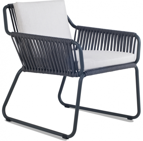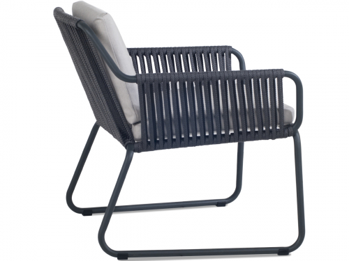 Riva-K Lounge – это лаунж кресло, обладающее стильным и гостеприимным дизайном. Гармоничное сочетание металлического каркаса с плетением спинки и подлокотников канатом роуп создает теплое и привлекательное изделие, способное обеспечить релаксирующую атмосферу. Дополнительный комфорт придают мягкие и удобные подушки на сиденье и спинке из высококлассных материалов, предназначенных для использования на открытых пространствах. Это кресло идеально подходит для создания лаунж зоны в саду или на террасе.