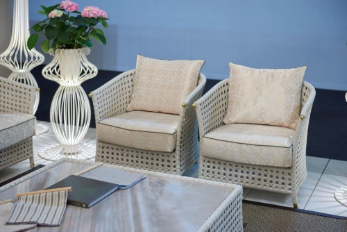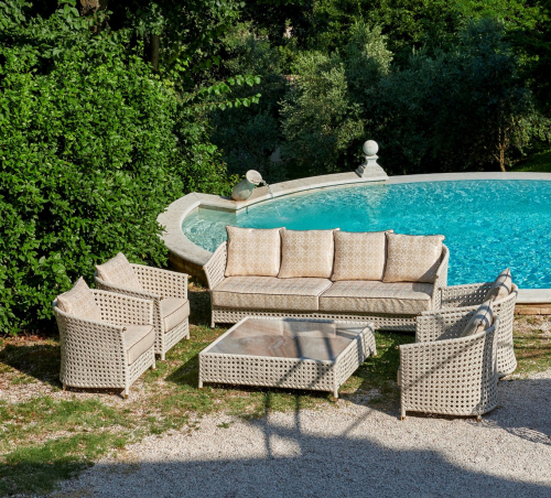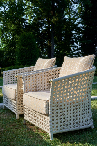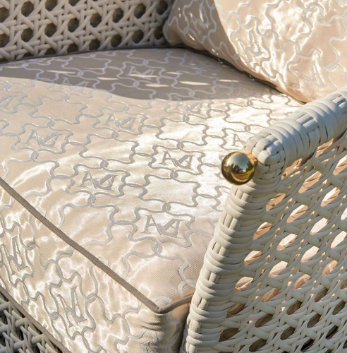 Мебель из синтетического волокна VIRO® ручной работы, разработанная для длительного использования на открытом воздухе и, следовательно, устойчивая к любым атмосферным воздействиям. Обладает устойчивостью к перепадам температур (от -70°C до +80°C), ультрафиолетовым лучам, не теряет цвет, влагостойкостью, устойчивость к соли и хлору, плесени. Это нетоксичный экологичный материал (на 100% перерабатываемый), по ощущению как натуральный материал.
