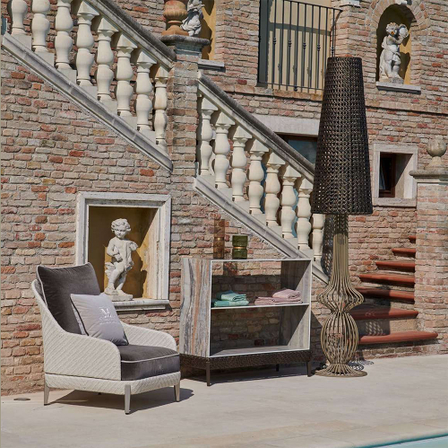 Каждый элемент разработан и создан для защиты от атмосферных воздействий. Прочность, универсальность и легкость: вот характеристики, которые делают эту коллекцию идеальной для открытых пространств в самых разнообразных современных жилых помещениях. Мебель из синтетического волокна VIRO® ручной работы, разработанная для длительного использования на открытом воздухе и, следовательно, устойчивая к любым атмосферным воздействиям. Обладает устойчивостью к перепадам температур (от -70°C до +80°C), ультрафиолетовым лучам, не теряет цвет, влагостойкостью, устойчивость к соли и хлору, плесени. Это нетоксичный экологичный материал (на 100% перерабатываемый), по ощущению как натуральный материал. Корпус мебели реализуют из крашеного алюминия, покрытого плетением из специального синтетического волокна того же цвета. Чехлы подушек выполнены из уличных тканей - дышащих, водоотталкивающих, устойчивых к плесени, они не обесцвечиваются и устойчивы к УФ-лучам. Кроме того, их можно стирать в стиральной машине при 30 °C, и они просты в уходе. Чехлы подушек могут быть выполнены из тканей категорий C, D, E, F, G, S, а также из собственной ткани клиента. Посмотреть палитру материалов Samuele Mazza.