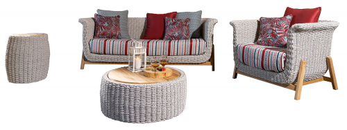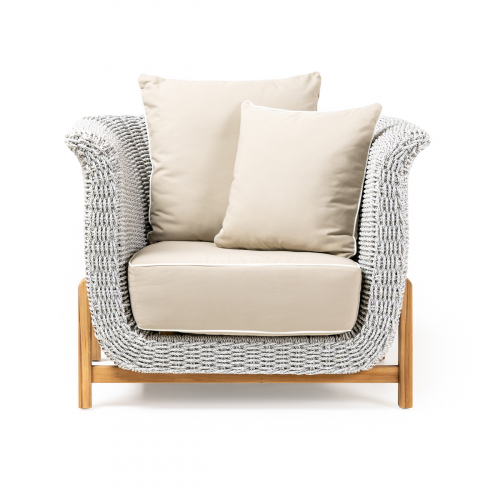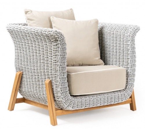 Кресло из серии Zante изготовлено на прочной тиковой основе и вручную сплетено из веревки Rehau высочайшего качества. Внутренний каркас изготовлен из алюминия, окрашенного эпоксидной порошковой краской. Изысканные и обволакивающие линии, очень высокое качество материалов, тонкий баланс между дизайном и традицией, между классическими закругленными формами и игрой материалов делают это садовое кресло Zante дизайнерским продуктом, подходящим для обустройства как внутренних, так и внешних пространств. Как и другие изделия фабрики RosaDesign, оно не боится непогоды и перепадов температуры благодаря сертифицированному плетению волокна.
