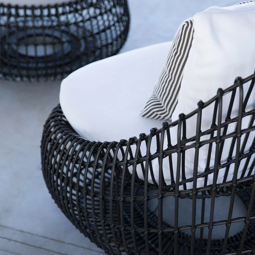 Превосходная эстетика коллекции Vino обусловлена прекрасным обрамлением и инновационными технологиями. Широко открытый узор плетения не позволяет этой просторной раме чувствовать себя тяжелой, она настолько же прочна, насколько и красива. Изделия коллекции изготовлені из алюминия и волокна JANUS, сотканного вручную. Эффектные изделия Vino Lava или Nimbus созданы для изысканных пространств как внутри, так и снаружи.