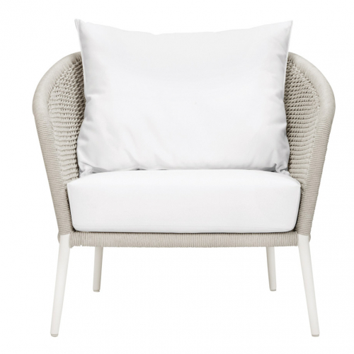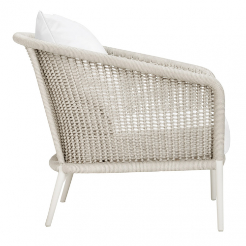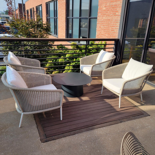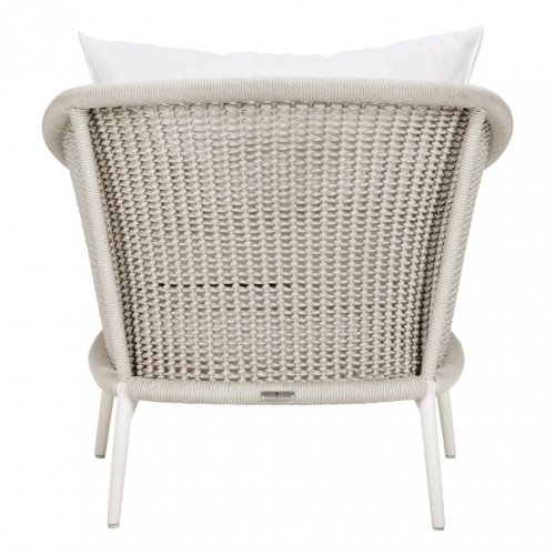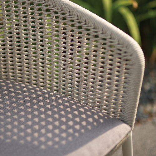 Knot - это коллекция для обеденной и гостиной зоны, которая отличается красивыми плетеными элементами ручной работы, поддерживаемыми легкой алюминиевой рамой. Используя технику макраме модифицированного рифового узла, этот ансамбль необычного дизайна настолько же прочен, насколько и превосходен.