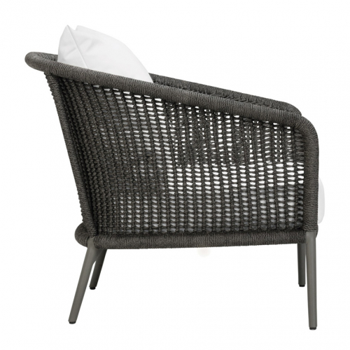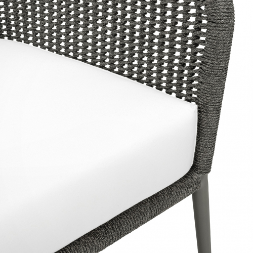 Knot - это коллекция для обеденной и гостиной зоны, которая отличается красивыми плетеными элементами ручной работы, поддерживаемыми легкой алюминиевой рамой. Используя технику макраме модифицированного рифового узла, этот ансамбль необычного дизайна настолько же прочен, насколько и превосходен.