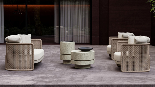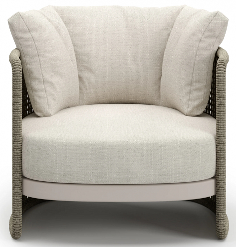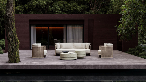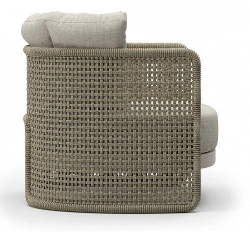 Коллекция Miura для отдыха на открытом воздухе - это приглашение к комфорту и элегантности. Мягкие, объемные сиденья привлекают внимание своей плетеной оболочкой, отличительной чертой, достигнутой за счет использования акриловых шнуров разного диаметра. Это плетение не только придает уникальный внешний вид, но и добавляет привлекательные тактильные ощущения. Miura предлагает широкий ассортимент элементов для уличной среды, гарантируя решения для различных потребностей. От предметов мебели для отдыха, которые приглашают расслабиться и комфортно провести время, до обеденных наборов, которые сочетают стиль и функциональность для дружеских встреч, вплоть до шезлонгов, каждый элемент разработан, чтобы придать характер окружающей среде.