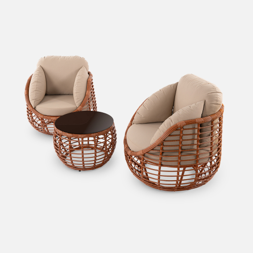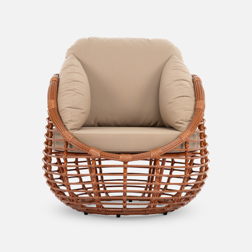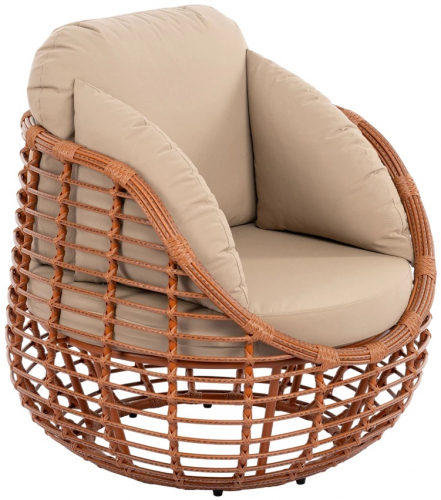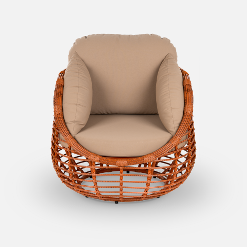 Эргономика кресла обеспечивает комфорт: спинка и подлокотники образуют единую чашу, мягко поддерживающую корпус. Материалы подобраны для долговечности: ротанг не выцветает на солнце, а каркас с порошковой окраской защищен от коррозии. Модель органично вписывается в частные террасы, зоны у бассейна и коммерческие пространства. Преимущества коллекции: глубокая посадка с полной поддержкой спины, устойчивость к влаге и ультрафиолету, простой уход без специальных средств.