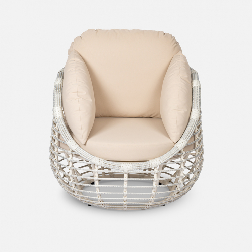 Эргономика кресла обеспечивает комфорт: спинка и подлокотники образуют единую чашу, мягко поддерживающую корпус. Материалы подобраны для долговечности: ротанг не выцветает на солнце, а каркас с порошковой окраской защищен от коррозии. Модель органично вписывается в частные террасы, зоны у бассейна и коммерческие пространства. Преимущества коллекции: глубокая посадка с полной поддержкой спины, устойчивость к влаге и ультрафиолету, простой уход без специальных средств.