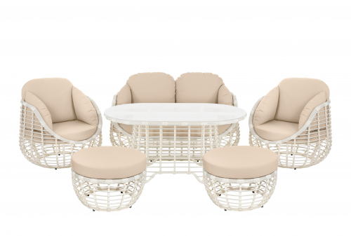 Цена на сайте указана за модель с плетением в цвете Доминикана и обивкой подушек из ткани Jamaica Beige. Для уточнения всех возможных вариантов материала и цвета данного изделия обращайтесь к нашим менеджерам.