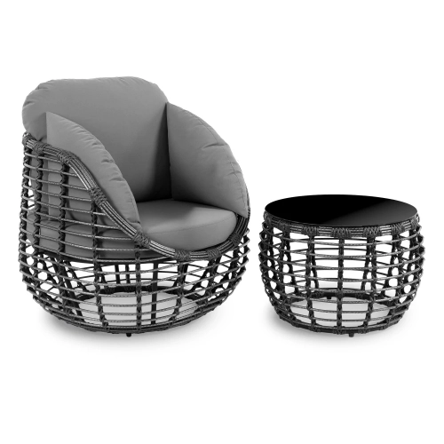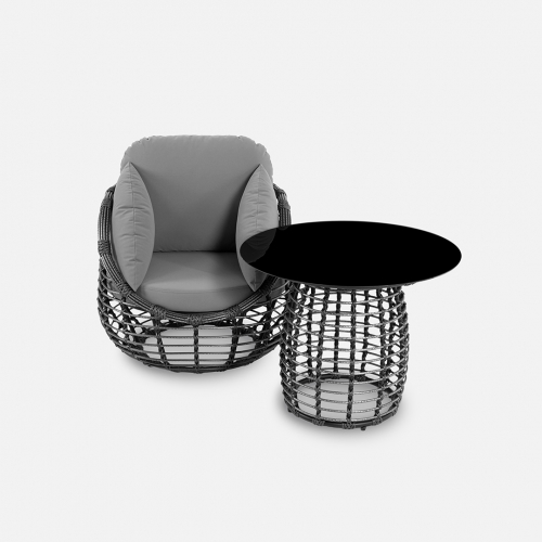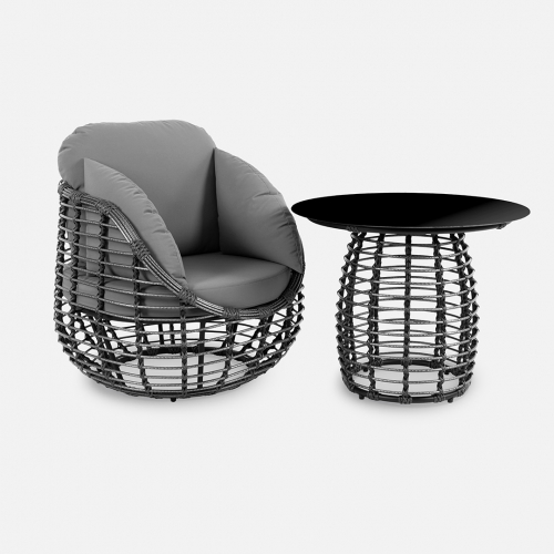 Цена на сайте указана за модель с плетением в цвете Черный металлик и обивкой подушек из ткани Jamaica Grey. Для уточнения всех возможных вариантов материала и цвета данного изделия обращайтесь к нашим менеджерам.