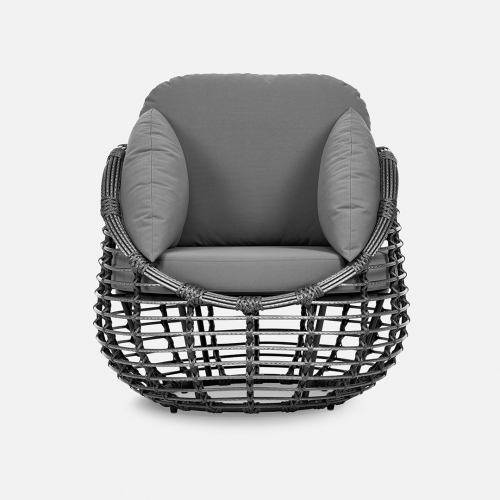 Эргономика кресла обеспечивает комфорт: спинка и подлокотники образуют единую чашу, мягко поддерживающую корпус. Материалы подобраны для долговечности: ротанг не выцветает на солнце, а каркас с порошковой окраской защищен от коррозии. Модель органично вписывается в частные террасы, зоны у бассейна и коммерческие пространства. Преимущества коллекции: глубокая посадка с полной поддержкой спины, устойчивость к влаге и ультрафиолету, простой уход без специальных средств.
