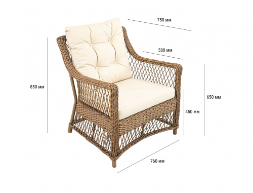 Кресло изготовлено из высококачественных материалов, обеспечивающих максимальный комфорт. Его мягкие подушки позволят вам расслабиться и наслаждаться временем, проведенным с семьей и друзьями. Материалы, использованные в производстве, устойчивы к воздействию внешней среды. Вы можете не беспокоиться о том, что дождь или солнечные лучи повредят вашу мебель.